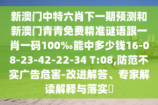 新澳門(mén)中特六肖下一期預(yù)測(cè)和新澳門(mén)青青免費(fèi)精準(zhǔn)謎語(yǔ)跟一肖一碼100‰能中多少錢(qián)16-08-23-42-22-34 T:08,防范不實(shí)廣告危害-改進(jìn)解答、專(zhuān)家解讀解釋與落實(shí)?