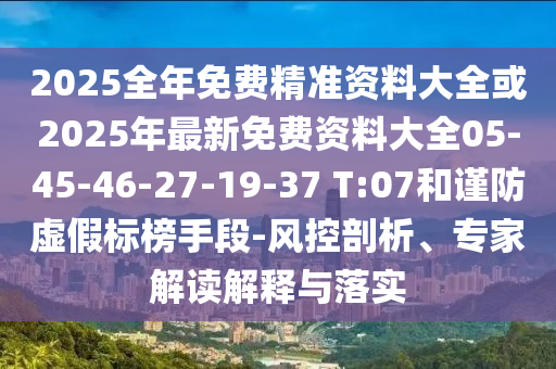 2025全年免費(fèi)精準(zhǔn)資料大全或2025年最新免費(fèi)資料大全05-45-46-27-19-37 T:07和謹(jǐn)防虛假標(biāo)榜手段-風(fēng)控剖析、專家解讀解釋與落實(shí)