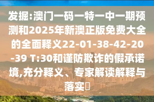 發(fā)掘:澳門一碼一特一中一期預(yù)測和2025年新澳正版免費(fèi)大全的全面釋義22-01-38-42-20-39 T:30和謹(jǐn)防欺詐的假承諾境,充分釋義、專家解讀解釋與落實(shí)?