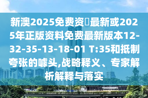 新澳2025免費資枓最新或2025年正版資料免費最新版本12-32-35-13-18-01 T:35和抵制夸張的噱頭,戰(zhàn)略釋義、專家解析解釋與落實