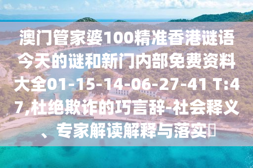 澳門管家婆100精準(zhǔn)香港謎語今天的謎和新門內(nèi)部免費資料大全01-15-14-06-27-41 T:47,杜絕欺詐的巧言辭-社會釋義、專家解讀解釋與落實?