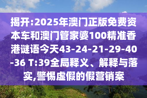 揭開:2025年澳門正版免費(fèi)資本車和澳門管家婆100精準(zhǔn)香港謎語今天43-24-21-29-40-36 T:39全局釋義、解釋與落實(shí),警惕虛假的假營銷案