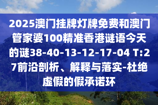 2025澳門掛牌燈牌免費(fèi)和澳門管家婆100精準(zhǔn)香港謎語今天的謎38-40-13-12-17-04 T:27前沿剖析、解釋與落實(shí)-杜絕虛假的假承諾環(huán)