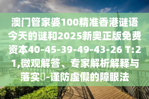 澳門管家婆100精準香港謎語今天的謎和2025新奧正版免費資本40-45-39-49-43-26 T:21,微觀解答、專家解析解釋與落實?-謹防虛假的障眼法