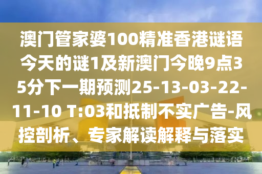澳門管家婆100精準(zhǔn)香港謎語今天的謎1及新澳門今晚9點35分下一期預(yù)測25-13-03-22-11-10 T:03和抵制不實廣告-風(fēng)控剖析、專家解讀解釋與落實