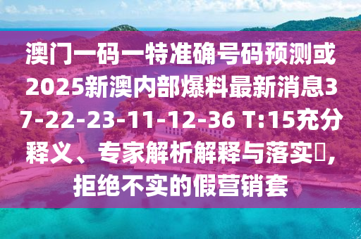 澳門一碼一特準(zhǔn)確號(hào)碼預(yù)測(cè)或2025新澳內(nèi)部爆料最新消息37-22-23-11-12-36 T:15充分釋義、專家解析解釋與落實(shí)?,拒絕不實(shí)的假營(yíng)銷套